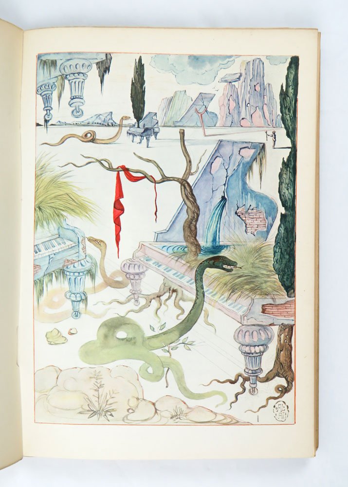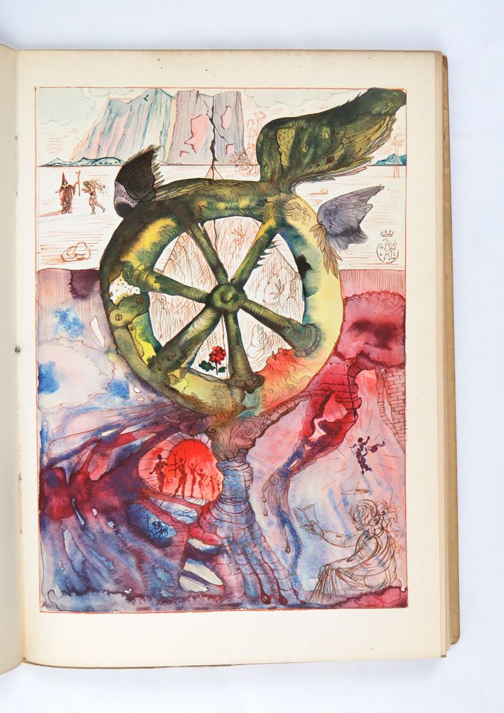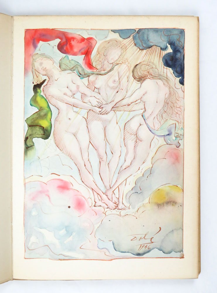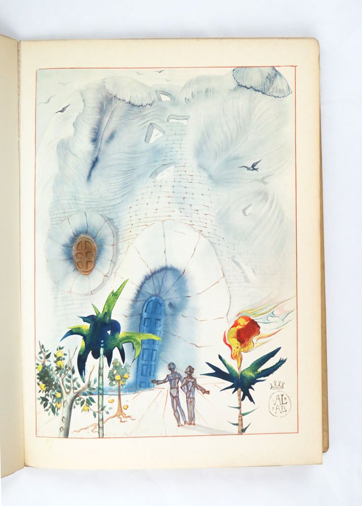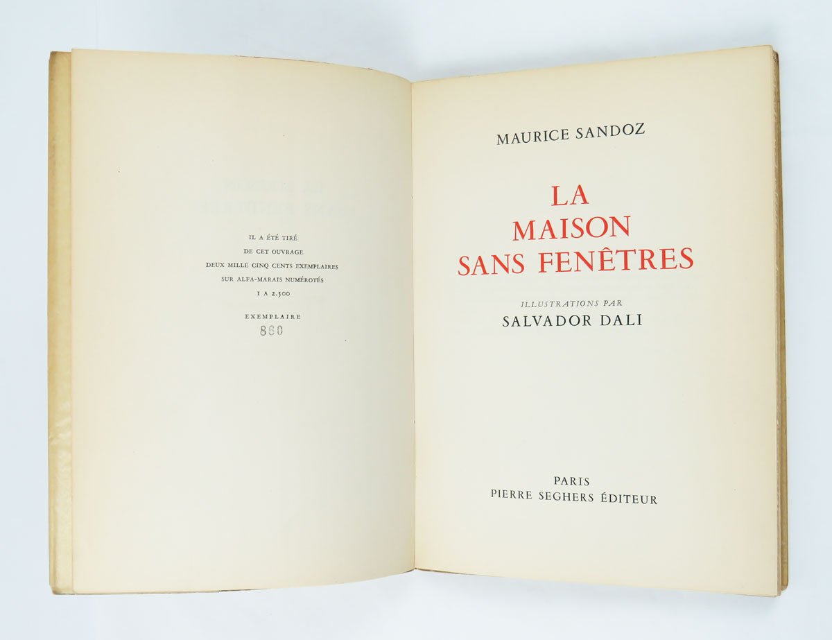 LIBROEdizione originale.Esemplare 860 / 2500 in ottime condizioni, a fogli ancora chiusi (normale brunitura perimetrale), completo del pergamino editoriale (normalmente ingiallito).Edizione impreziosita da sette tavole a colori di Salvador Dalì. il libro era uscito in traduzione tedesca l’anno prima da Morgarten di Zurigo come «Das Haus ohne Fenster».