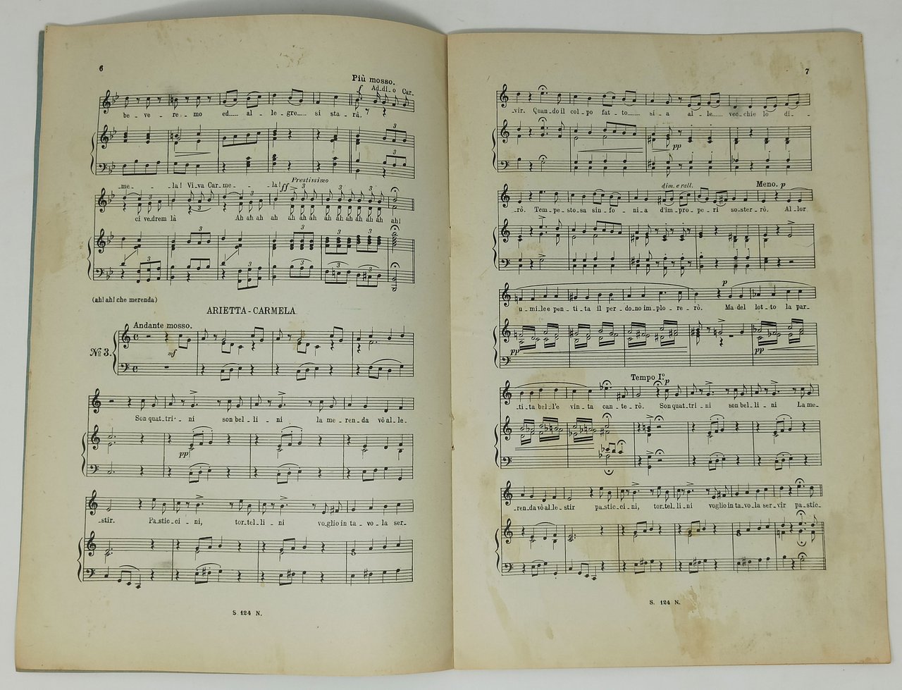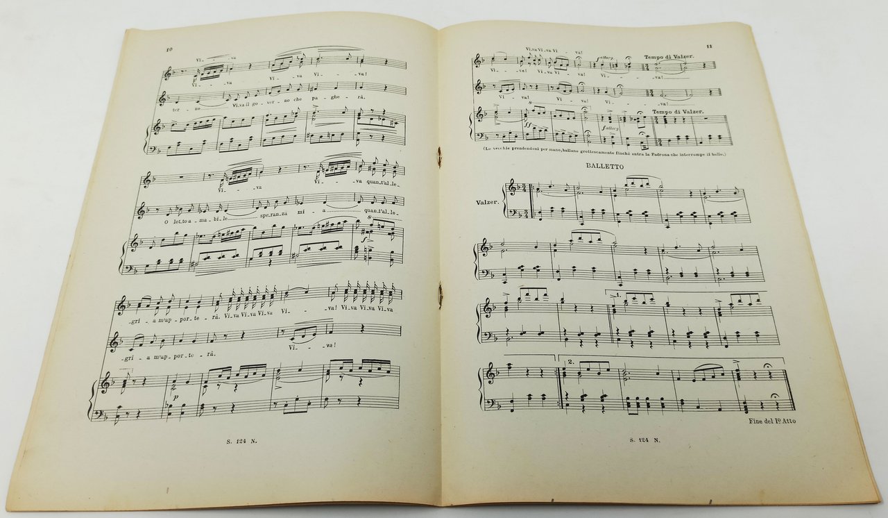 SPARTITO MUSICALE. Dimensioni: 21 x 31 cm circa. Stato di conservazione: Qualche segno del tempo e dell'utilizzo (una leggera piega sull'angolo superiore dei fogli, qualche alone su pagina 7 ma, nel complesso, un buon esemplare. Musica e parole.
