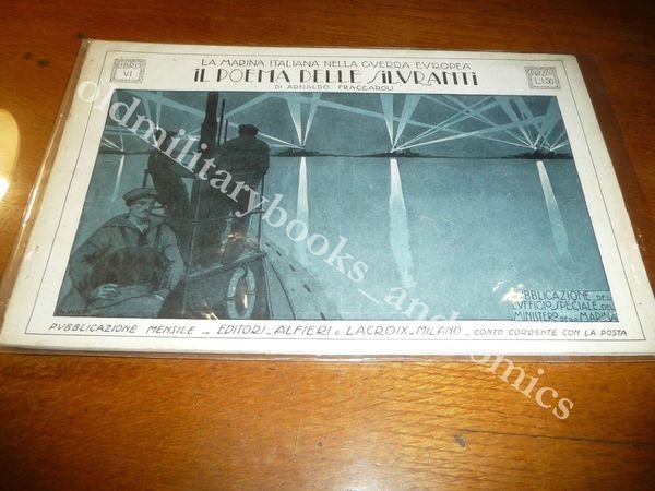 DESCRIZIONE: Alfieri e Lacroix Milano 1917 br. ed. ill. pp. 64 cm 19,5x29,5 in 8° oblungo, rivista pressochè illustratata con numerose foto anche a piena pagina inedite. Volume sesto della serie della Marina Italiana nella Guerra Europea pubblicazioni dell'Ufficio Speciale del Ministero della Marina dedicato alla lotta delle siluranti: Mas - Numerose foto a piena pagina inedite. CONDIZIONI: Discrete/Buone vol. con segni del tempo, dorso con danni. PESO / WEIGHT: 189 gr. without package