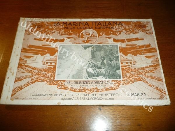 DESCRIZIONE: Alfieri e Lacroix Milano 1916 br. ed. ill. pp. 64 cm 19,5x29,5 in 8° oblungo, rivista pressochè illustratata con numerose foto anche a piena pagina inedite. Volume primo della serie della Marina Italiana nella Guerra Europea pubblicazioni dell'Ufficio Speciale del Ministero della Marina relativo alla prime fasi della guerra in Adriatico - Numerose foto a piena pagina inedite. Indice completo in foto. CONDIZIONI: Discrete/Buone vol. con segni del tempo, dorso con danni. PESO / WEIGHT: 177 gr. without package