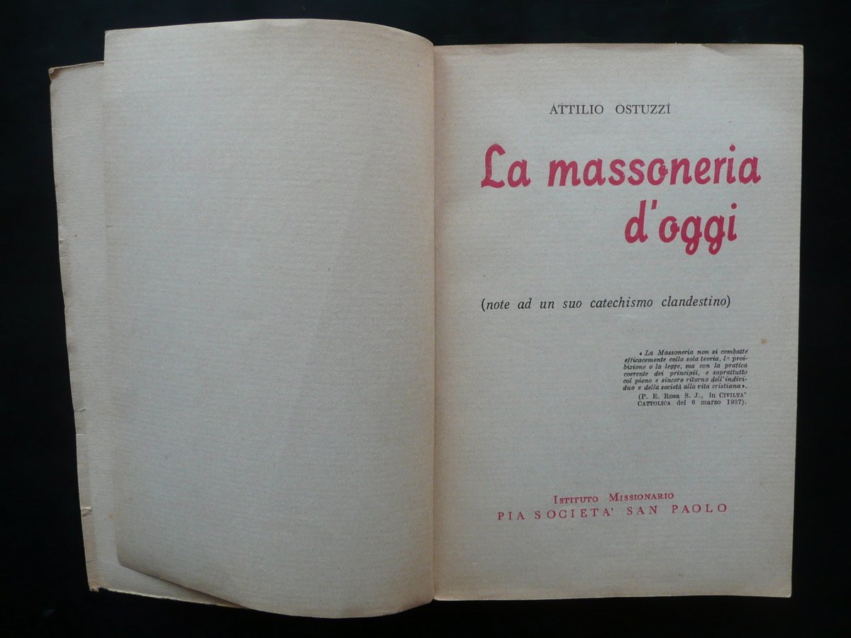 La Massoneria d'Oggi Attilio Ostuzzi Pia Societ‡ San Paolo 1941 Ebraismo Setta