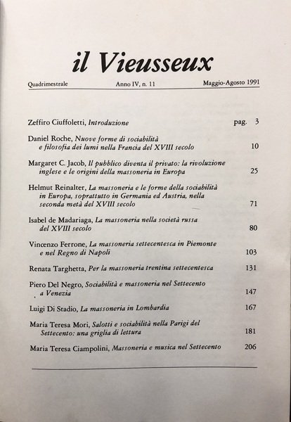 LA MASSONERIA E LE FORME DELLA SOCIABILITA' NELL'EUROPA DEL SETTECENTO