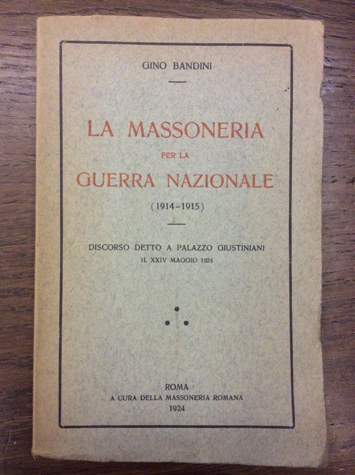 LA MASSONERIA PER LA GUERRA NAZIONALE (1914-1915). - Discorso detto a Palazzo Giustiiniani il XXIV maggio 1924.