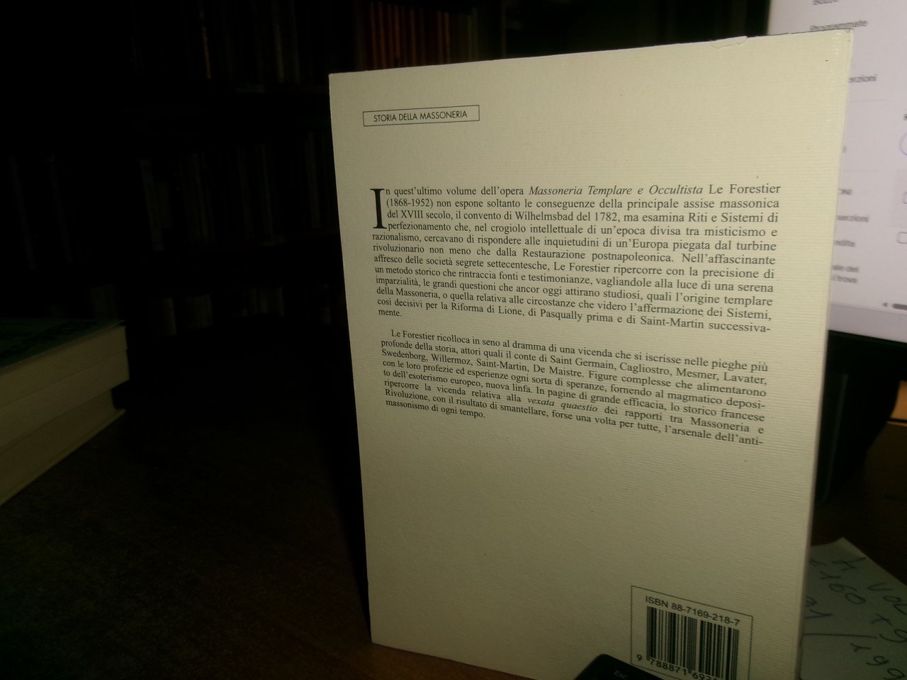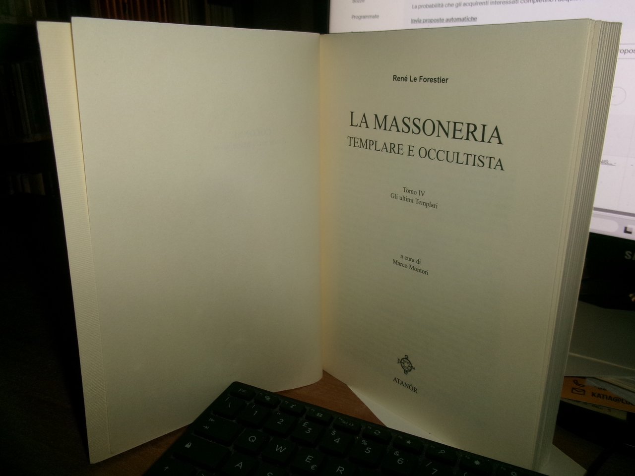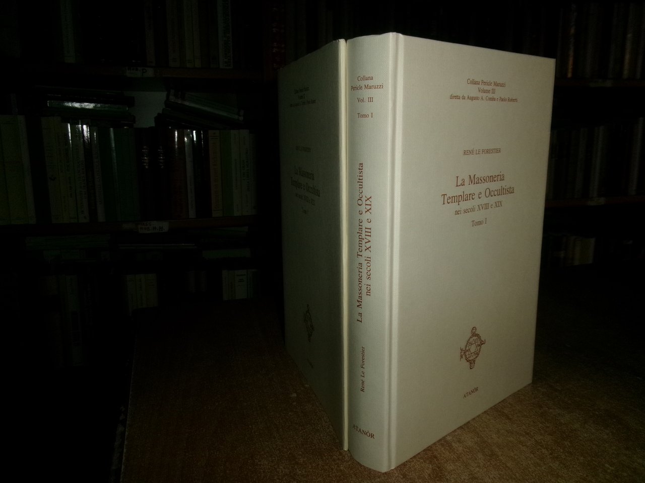René Le Forestier. Roma, Atanòr, 1991 - 1997 - 2002 - 2006. La Massoneria Templare e Occultista nei Secoli XVIII... 4 volumi in-8°, (3 vol. br.), (1 vol. in tela). Opera così composta: Tomo I. Vol. III. La Massoneria Templare e Occultista nei Secoli XVIII. (xiv), 322, (1) pp. con ritratto di Willermoz. Tomo II. I Cavalieri Beneficienti della Città Santa. 319 pp. Tomo III. Il sistema di Wilhelmsbad. 269 pp. Tomo IV. Gli ultimi Templari. 327 pp. I libri sono di diverse collane ma di uguale argomento. Opera come nuova. Uff. mob. C -