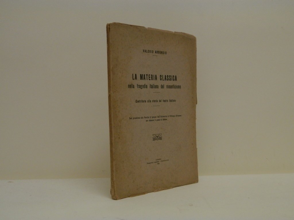 8°, mm 230x160, pp. 157, brossura editoriale, discreto stato di conservazione, segni d'uso e piccoli marginali strappetti alla copertina, pagine uniformemente ingiallite dal tempo, tesi presentata alla Facoltà di Lettere dell'Università di Friburgo (Svizzera) per ottenere il grado di dottore.. *** TUTTI I NOSTRI LIBRI SONO VISIBILI PREVIO CONTATTO MAIL O TELEFONO NELLA NUOVA SEDE DI MILANO: LIBRERIA COSMOPOLIS, VIA JOMMELLI, 22. ***
