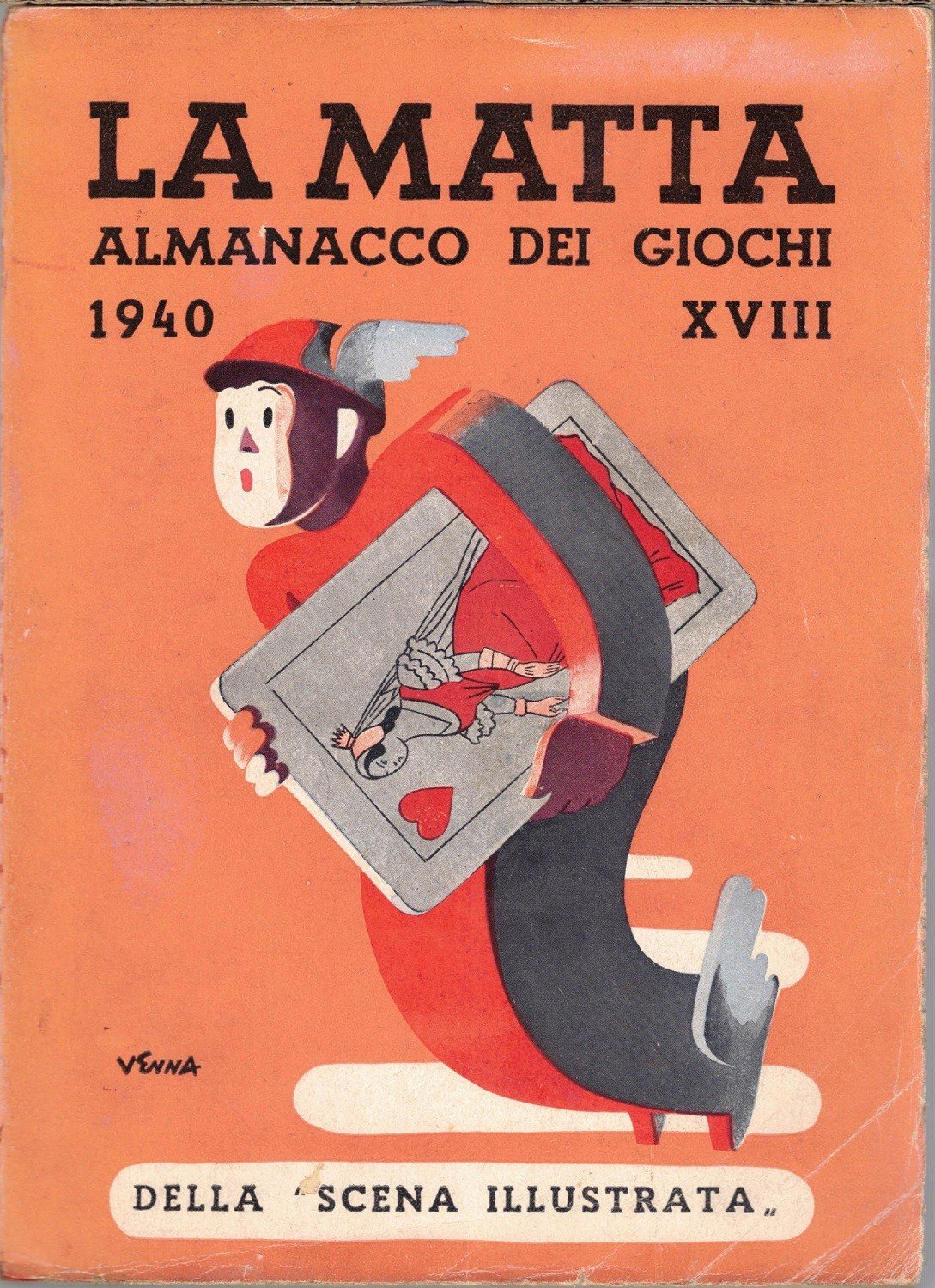 La matta. Almanacco dei giochi. Letterario Storico Geografico Umoristico Artistico Tecnico Pratico, Edizioni Scena Illustrata, Firenze 1940, pp. 271, ill. b.n., cm 22, br. ed. Tracce d’uso, una piccola riparazione al dorso, ordinari segni del tempo, per il resto e nel complesso copia comunque in condizioni più che accettabili, con brossura solida e interno ben tenuto.