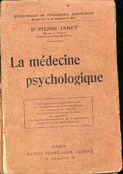In-16°, pp. 288, brpssira editoriale rossa (con restauri). Una firma del tempo. Buon esemplare. Edizione originale. Importante studio sulla psicoterapia e i poteri di autoguarigione del grande psicologo e filosofo francese (Parigi, 1859-ivi, 1947), le cui ricerche dettero origine a concetti che solo nella psicanalisi novecentesca troveranno la loro compiuta formulazione (i tipi psicologici di Jung e la teoria adleriana della compensazione tra tutte) e che introdusse per primo i termini 'dissociazione' e 'subconscio' nella scienza psichiatrica. 'Although underappreciated in Britain and the United States, the work of Janet was fundamental to the establishment of psychology as a discipline. He originated several key psychiatric concepts and his work directly inspired both Jung's concepts of introversion and extroversion and Adler's theory of compensation'. (Norman). Bibliothèque de Philosophie scientifique. Garrison Morotn, 4990.
