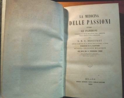 LA MEDICINA DELLE PASSIONI. OVVERO LE PASSIONI CONSIDERATE NELLE RELAZIONI COLLA MEDICINA, COLLE LEGGI E COLLA RELIGIONE. - QUARTA EDIZIONE MILANESE