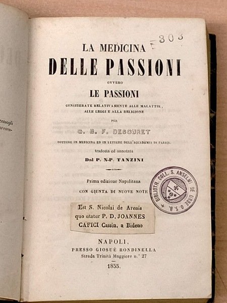 La medicina delle passioni ovvero le passioni considerate relativamente alla malattie allle leggi e alla religione.