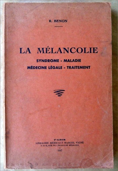 La Mélancolie. Syndrome-Maladie-Médecine Légale-Traitement.