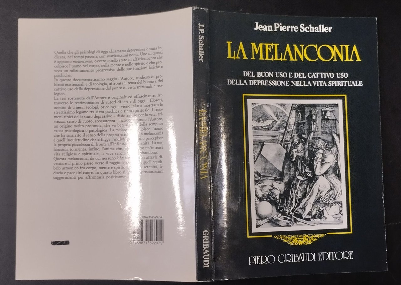 LA MELANCONIA del buon uso e del cattivo uso della depressione nella vita spirituale di Jean Pierre Shaller. Piero Gribaudi Editore,1991 . 190 pagine. Copertina editoriale in brossura. Stato di conservazione: molto buono (pagine normalmente ingiallite) Libro usato saggistica religione spiritualità