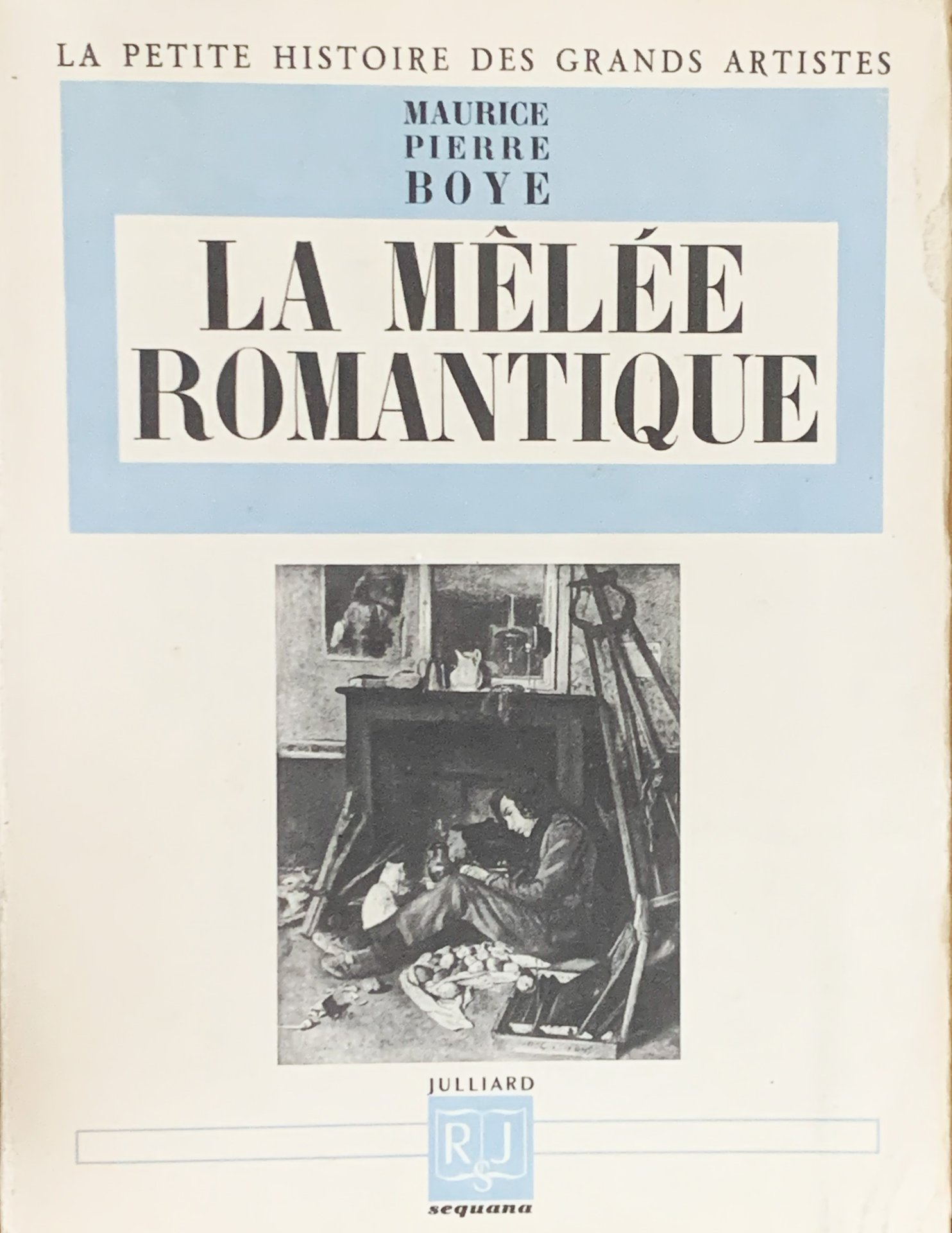 I ed. (29 juin 1946). Collezione "La petite histoire des grands artistes". Testo in francese. XVI grande/ 256/ brossura in cartoncino liscio bianco con titoli in nero e azzurro e con illustrazione in b/n al primo piatto. Con XVI tavole f.t. illustrate in b/n. Conservata la fascetta editoriale. Stato buono (leggera usura della copertina ai margini - copertina e pagine lievemente brunite - quasi interamente intonso - fascetta editoriale con un piccolo strappo al margine superiore). Table: Antoine-Jean Gros: La Genèse d'un Suicide - Jules-Robert Auguste: L'Appel de l'Orient - Horace Vernet: L'Atelier de la rue des Martyrs - Théodore Géricault: Autour d'un Naufrage-L'amateur de Chevaux - Ary Scheffer: Le Rêveur tourmenté d'Infini - Paul Delaroche: Un Emule de Casimir Delavigne - Eugène Delacroix: Les "enfances" de Delacroix-Le Cadre de la "Barque du Dante"-La Musique et la Société - Gabriel Decamps: L'Alchimiste Misanthrope - Paul Huet: Le sortilèges de l'Ile Enchantée - La Découverte de Trouville - L'Amitié des Dieux - Louis Boulanger: Le Peintre de Victor Hugo-Le Bal d'Alexandre Dumas - Eugène Devéria: La Maison de la Rue Notre-Dame-des-Champs-Les Etapes d'un Quaker - Théodore Chassériau: La Benjamin du Doyenné-La Nymphe Endormie-La Gentilhomme d'Art.