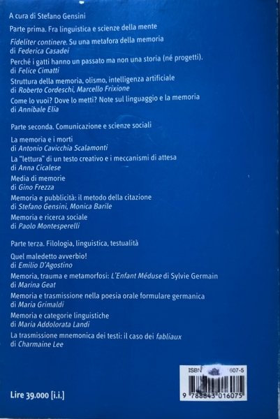 - Linguistica, Università, Scienze della comunicazione, Istituzioni, Saggi, Mass Media, Linguaggio, Semiotica, Segni, Epistemologia, Memoria, Trasmissione
