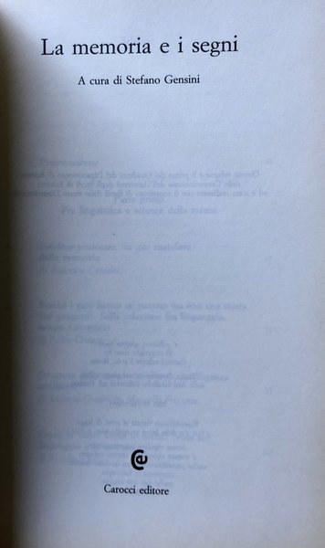 LA MEMORIA E I SEGNI. A CURA DI STEFANO GENSINI