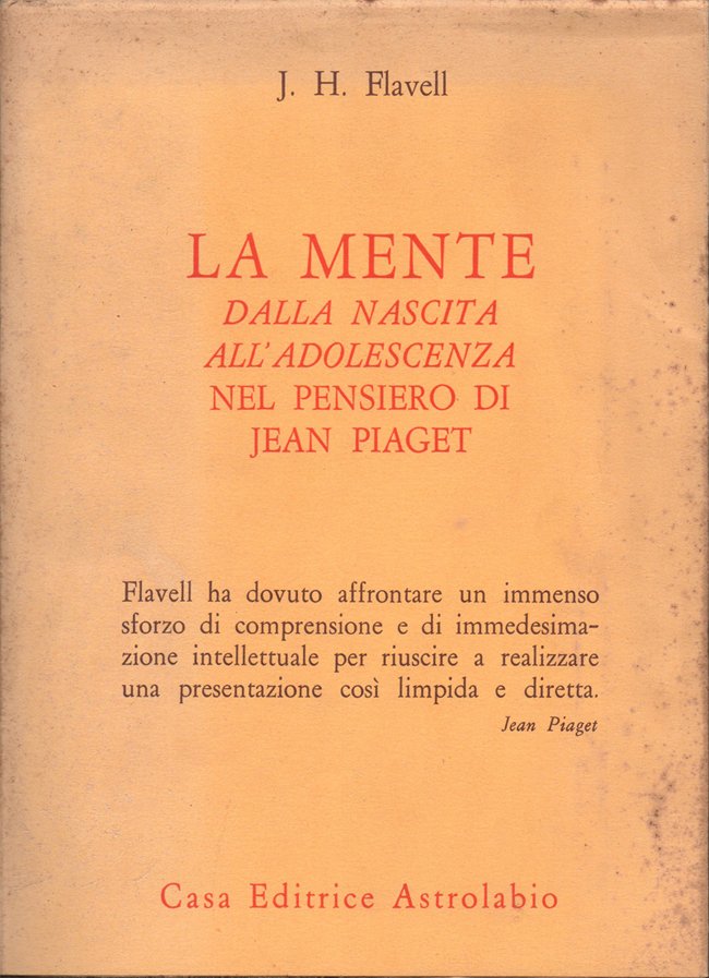 In-8° (20,9 x 15 cm) pp. 585, (3), copertina editoriale con sovraccoperta. Tracce del tempo alla sovraccoperta, in particolare, segni d'umido, e una leggera brunitura al dorso, per probabile esposizione alla luce. Segni d'umido anche al taglio di testa, a quello davanti e, pochi, piccoli e leggeri, alla prima carta bianca e al margine esterno delle ultime pagine di indice. Per il resto, ben conservato. Nella collana di testi e documenti per lo studio della psicologia del profondo «Psiche e Coscienza». Indice: Presentazione, di Jean Piaget. Prefazione.Introduzione. L'uomo e l'opera. Questo libro. PARTE I - LA TEORIA. 1. Le caratteristiche del sistema. Gli obiettivi scientifici. Intelligenza. Sviluppo. Struttura, funzione e contenuto. Stadi qualitativi. La metodologia. La metodologia degli studi sull'intelligenza. Variazioni del metodo sperimentale. Caratteristiche comuni a tutte le situazioni "sperimentali". Criterio. Pericoli e difficoltà. L'analisi e la presentazione dei dati. Criterio. La metodologia degli studi sulla percezione. Differenze fra gli esperimenti sulla percezione e gli esperimenti sull'intelligenza. Analogie fra gli esperimenti sulla percezione e gli esperimenti sull'intelligenza. Le idiosincrasie del sistema. L'olismo. Matematica, logica, fisica e biologia. Descrizione e spiegazione contro predizione. Concetti "imprecisi" anziché concetti "rigorosi". Ampiezza della discussione dei dati. Simmetria. Approccio logico-analitico. I dati considerati in un contesto filosofico. Relativo isolamento da altri studi. 2. Le proprietà fondamentali del funzionamento cognitivo. Biologia e intelligenza. L'eredità specifica. L'eredità generale. Gli invarianti funzionali. Un esempio biologico. L'organizzazione cognitiva. L'adattamento cognitivo: assimilazione e accomodamento. Un esempio concreto.Il concetto di schema. Proprietà fondamentali. Funzionamento e sviluppo degli schemi. Relazioni assimilazione-accomodamento. Cambiamenti di sviluppo durante l'infanzia: schema fondamentale. La conseguenza della trasformazione del rapporto assimilazione-accomodamento durante lo sviluppo senso-motorio. Cambiamenti di sviluppo successivi all'infanzia. Cambiamenti non di sviluppo. Il modello assimilazione-accomodamento come teoria dell'intelligenza. L'associazionismo. L'intellettualismo. La teoria della Gestalt. La teoria della prova ed errore. La teoria dell'assimilazione-accomodamento. Motivazione e azione. La motivazione. L'azione. 3. Il periodo senso-motorio: sviluppo generale. Un sommario dei periodi di sviluppo. Il periodo senso-motorio: sviluppo generale. Primo stadio: l'uso dei riflessi (0-1 mese). Secondo stadio: i primi adattamenti acquisiti e la reazione circolare primaria (1-4 mesi). Terzo stadio: la reazione circolare secondaria e i procedimenti per far durare dei quadri visivi interessanti (4-8 mesi). Quarto stadio: la coordinazione degli schemi secondari e la loro applicazione alle situazioni nuove (8-12 mesi). Quinto stadio: la reazione circolare terziaria e la scoperta di nuovi mezzi mediante sperimentazione attiva (12-18 mesi). Sesto stadio: la scoperta di nuovi mezzi per combinazioni mentali (dai diciotto mesi in avanti). 4. Sviluppi senso-motori specifici e il sottoperiodo del pensiero pre-operatorio. Il periodo senso-motorio: sviluppi. L'imitazione. Il gioco. La nozione di oggetto. La nozione di spazio. La causalità. Il tempo. Conclusione. Il pensiero pre-operatorio. Il passaggio al pensiero pre-operatorio. La natura del pensiero pre-operatorio. Cambiamenti evolutivi del sottoperiodo pre-operatorio. 5. Le operazioni concrete. L'organizzazione delle azioni cognitive in sistemi operatori. Le strutture delle operazioni concrete: strutture logico-matematiche e strutture cognitive. Le strutture delle operazioni concrete: i raggruppamenti delle operazioni logiche. I nove raggruppamenti delle classi e delle relazioni logiche. Raggruppamenti logici e comportamento cognitivo. Le strutture delle operazioni concrete: altri sistemi operatori concreti. Raggruppamenti infralogici. I gruppi aritmetici e la misura. Altre strutture. 6. Le operazioni formali e la percezione. Le operazioni formali. Operazioni concrete e operazioni formali. La struttura delle operazioni formali. Le operazioni interproposizionali come gruppo. Implicazioni per il comportamento dell'adolescente. La percezione. La teoria della percezione. La teoria sulla percezione. 7. Il modello dell'equilibrio, l'epistemologia genetica e sommario generale. Modello dell'equilibrio. Introduzione. Le proprietà degli stati di equilibrio. Il processo di equilibrazione. Epistemologia genetica. Introduzione. Alcuni problemi di epistemologia genetica. Sommario generale. Metateoria. La teoria indipendente dagli stadi. La teoria dipendente dagli stadi. PARTE SECONDA - GLI ESPERIMENTI. 8. Il primo lavoro. Linguaggio e pensiero. Giudizio e ragionamento. La realtà. La causalità. Il giudizio morale. 9. La quantità, la logica, il numero, il tempo, il movimento e la velocità. La quantità. La logica. Il numero. Il tempo. Il movimento e la velocità. 10. Lo spazio, la geometria, il caso, la logica dell'adolescente e la percezione. Lo spazio. La geometria. Il caso. La logica dell'adolescente. La percezione. 11. Altri studi. La ricerca fodamentale recente. Studi sulla rappresentazione per immagini. La ricerca sullo sviluppo del numero. Altri studi. La costruzione dei test. Applicazioni pedagogiche. Gli studi sull'apprendimento. Gli studi di verifica. Il primo lavoro. Il numero e la quantità. Lo spazio e la geometria. Il caso e la logica dell'adolescenza. Altri campi di indagine. Studi vari. PARTE TERZA - OSSERVAZIONI CRITICHE. 12. Una valutazione del sistema. Aspetti positivi. Contributi alla teoria indipendente dagli stadi. Contributi alla teoria dipendente dagli stadi. Contributi ad altri campi. Altri contributi. Lagnanze, critiche e problemi. Lagnanze. Critiche e problemi. Bibliografia. Opere di Piaget pubblicate dopo il 1961. Traduzion