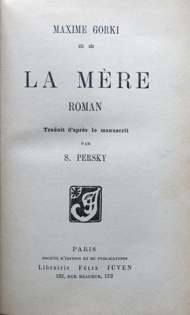Fèlix Juven, Paris, s.d. (ma 1907, prima edizione originale francese). In 8vo, pp. XII, 397, leg. in t. pelle marrone con dorso a cinque nervi, piccola impressione a secco ai piatti contropiatti in carta a fiori, ex libris di appartenenza. Pelle leggermente usurata, esemplare uniformemente ingiallito, buona conservazione.
