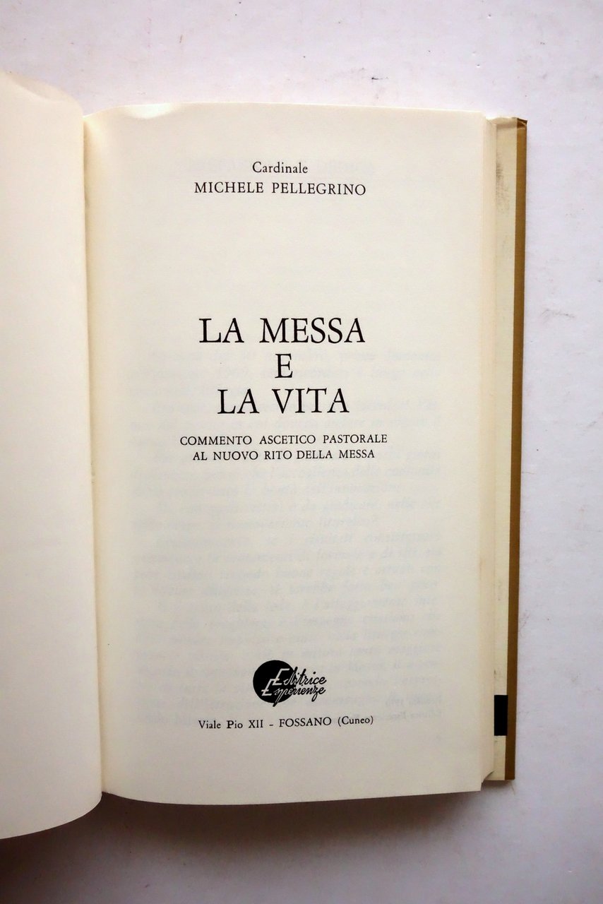 La Messa e la Vita Cardinale Michele Pellegrino Ed. Esperienze Fossano 1970
