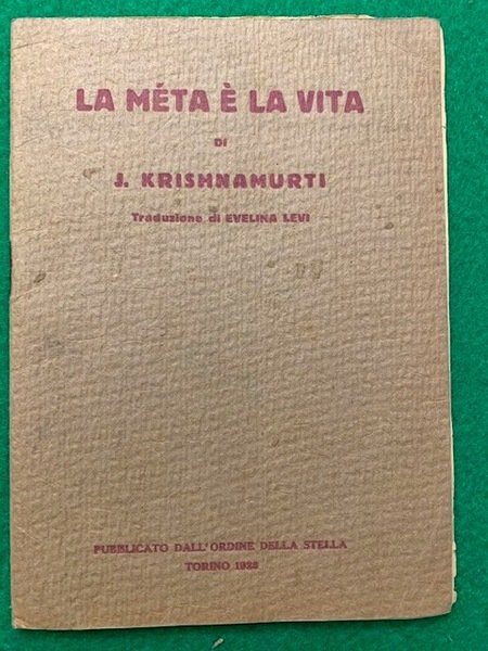 In 8° piccolo; (2), 27, (3) pp. Brossura editoriale con titolo impresso in amaranto al piatto anteriore. Antica collocazione in collezione privata al recto del piatto anteriore. Prima edizione non comune, pubblicato dall'Ordine della Stella e stampato dalla Società Anonima Unitipografica Pinorelese, di questo scritto del celebre filosofo apolide, Jiddu Krishnamurti (Madanapalle, 11 maggio 1895 Ojai, 18 febbraio 1986), nella traduzione di Evelina Levi. Esemplare in ottime condizioni di conservazione.