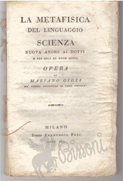 LA METAFISICA DEL LINGUAGGIO - SCIENZA NUOVA ANCHE AI DOTTI E PEI SOLI DI BUON SENSO