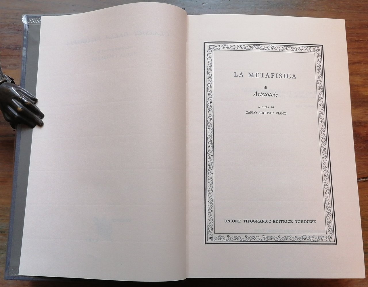 In 8°, legatura editoriale in piena tela grigia, titoli ed impressioni in oro al dorso, sovraccoperta in acetato trasparente, pp. 788,(6), con 8 tavole in bianco e nero fuori testo. A cura di Carlo Augusto Viano. Collana "Classici della filosofia", ristampa 1992. Ottimo stato di conservazione.