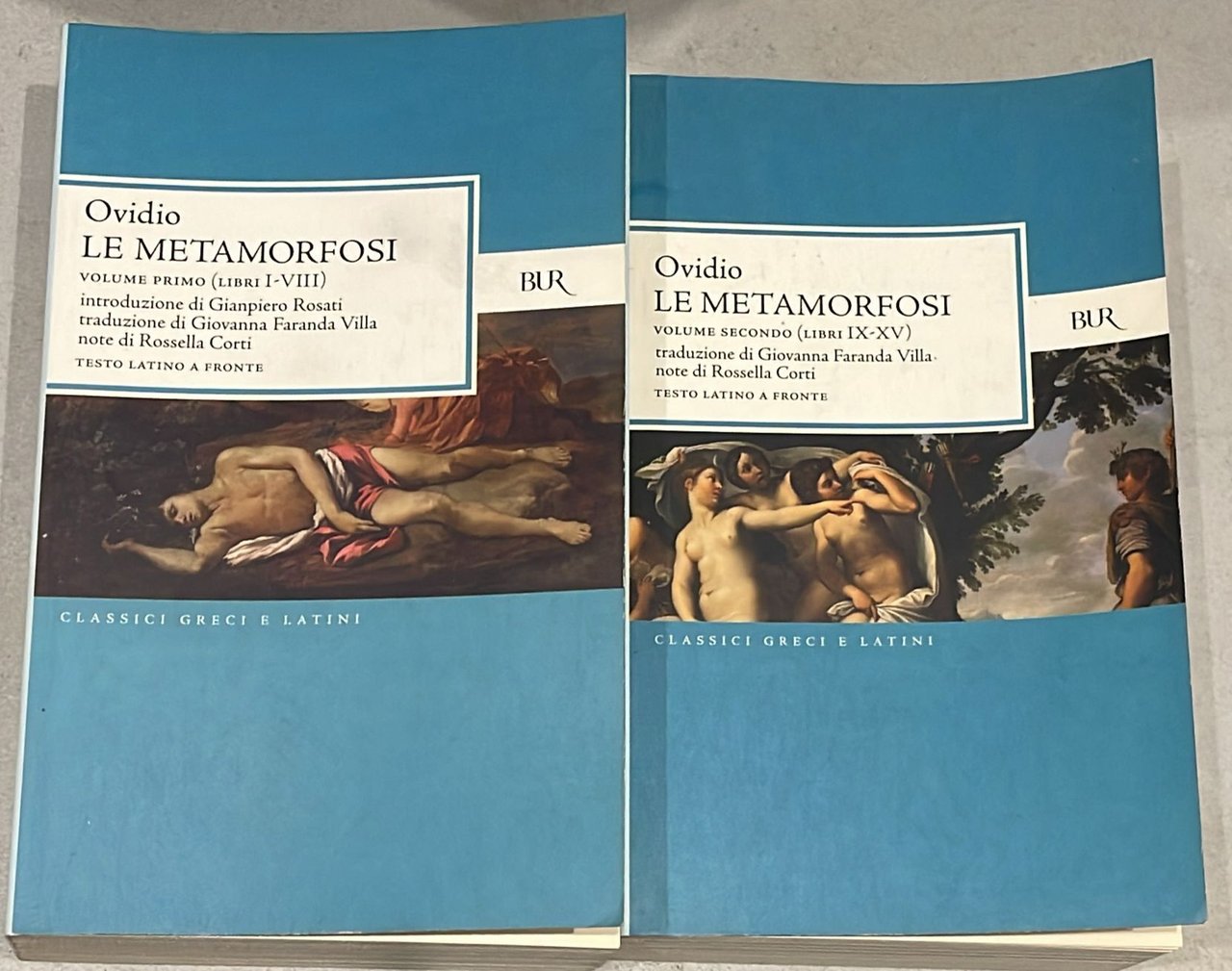 Dalla Biblioteca Universale Rizzoli, classici greci e latini opera in due volumi con testo latino a fronte, nel primo volume libri I-VIII, nel secondo libri IX-XV, introduzione di Giampiero Rosati, traduzione di Giovanna Faranda Villa, note di Rossella Corti. Volumi brossurati con copertina flessibile in buone condizioni, i tagli sono regolari e lievemente ingialliti come le pagine che risultano prive di segni e ben fruibili, buona la legatura. copertina flessibile 993 Buono (Good) .