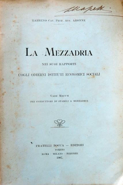 La mezzadria nei suoi rapporti cogli odierni istituti economici e sociali. Vademecum per conduttori stabili a mezzadria.
