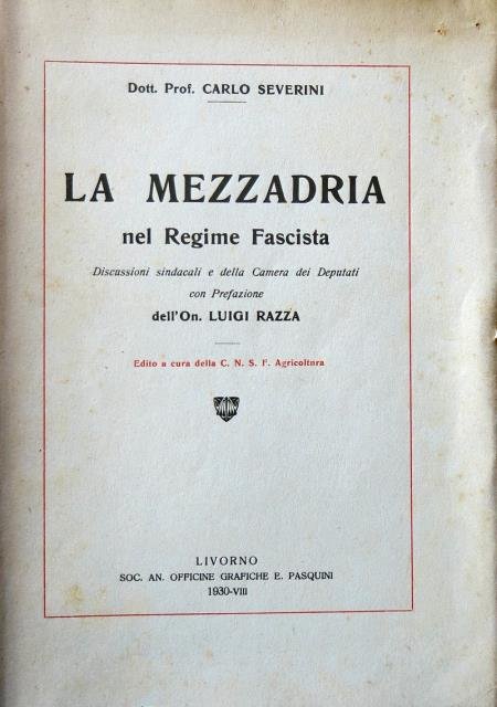 La mezzadria nel regime fascista. Discussioni sindacali e della camera dei Deputati. Con Pref. dell'On. Luigi Razza.