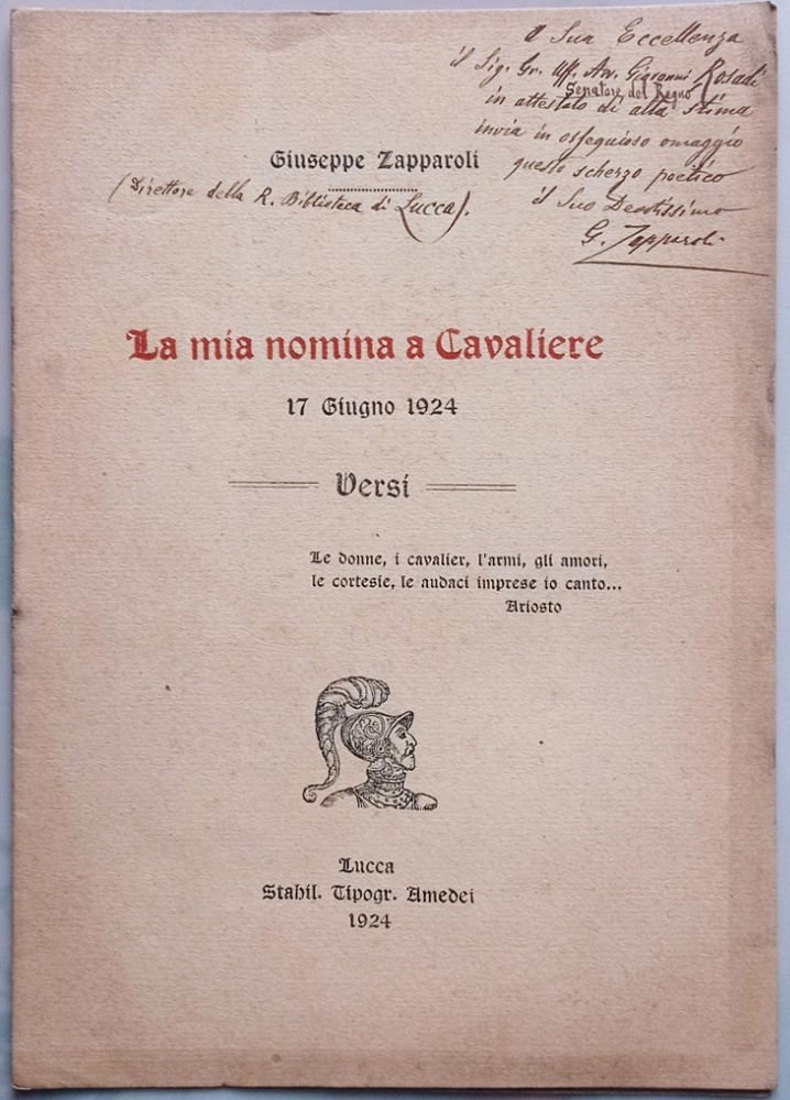 La mia nomina a Cavaliere. 17 Giugno 1924. Versi.