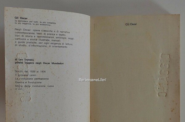 Stato di conservazione: DISCRETO, copertina con qualche traccia d'uso, macchioline e fioriture, dorso privo di difetti, ingiallimento e qualche fioritura ai tagli, sul piatto ant. della copertina e sulle prime pagine è impresso (tratteggiato) il timbro "omaggio" con distacco di un pezzetto di carta (sulla prima pagina), nessun segno o scritta all'interno. Collana: Oscar. Traduzione e introduzione di Livio Maitan.