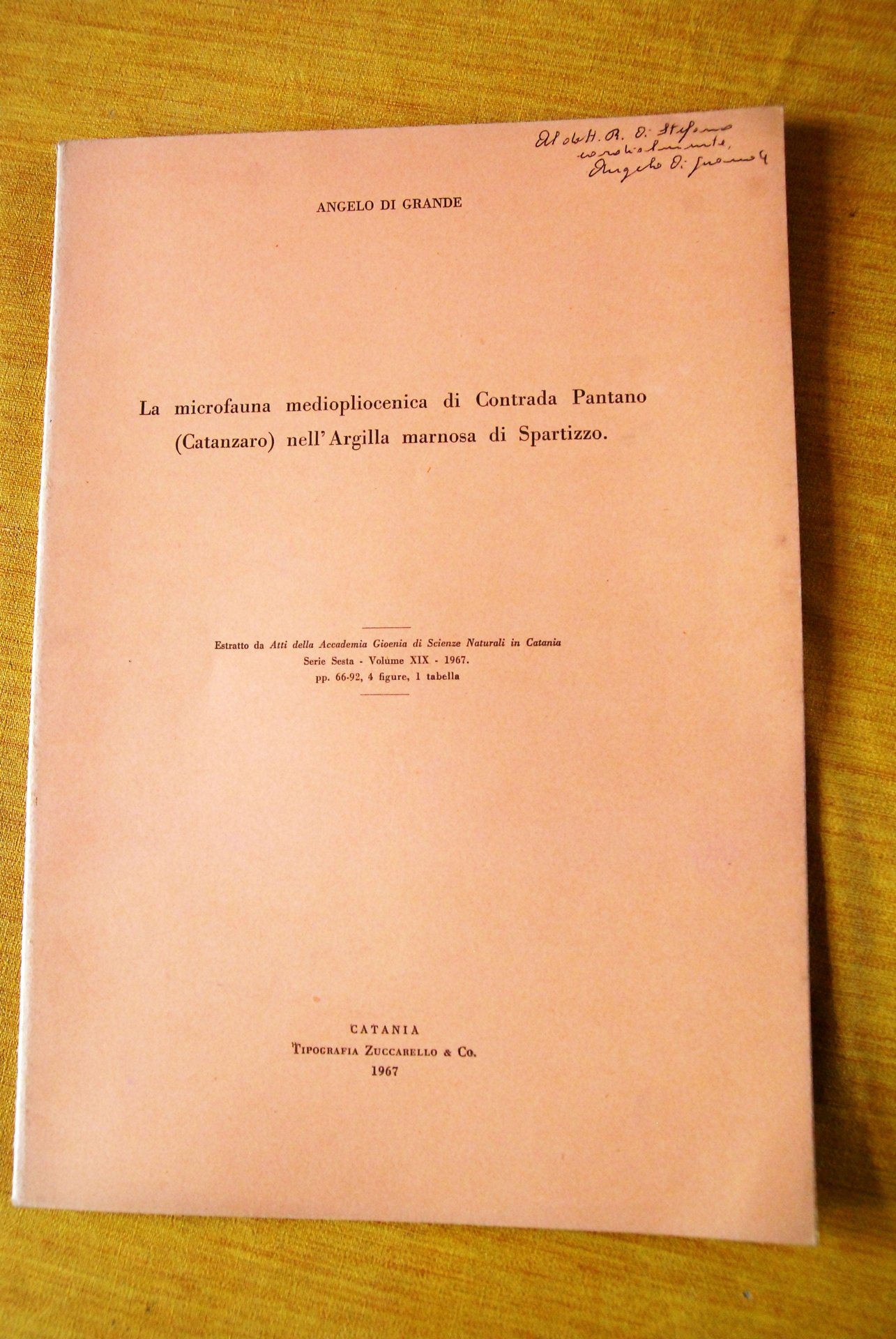angelo di grande la microfauna mediopliocenica di contrada pantano catanzaro nell'argilla marnosa di spartizzo. 1967 .