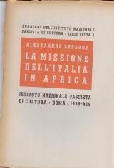 QUADERNI CULT. FASC. SERIE SESTA N.1 formato 16,5x22,5 - brossura - interno perfetto INTONSO I diritti dell'Italia ad avere il suo impero in Africa Orientale esposti da Alessandro Lessona, sottosegretario al Ministero delle Colonie. In appendice i Trattati, gli accordi e le convenzioni che si riferiscono direttamente o indirettamente all'argomento trattato e che nel loro insieme costituiscono un'importante documentazione per la storia diplomatica dei rapporti italo-abissini.