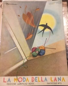 Fascicolo nr. 3. Pubblicazione semestrale, settembre, a cura del Lanificio Rossi di Schio, che propone capi moda in lana lavorati a maglia. Copertina e illustrazioni di Adolfo Busi. Lievi tracce d'uso ma nel complesso molto buono. Pagg. 21. Brossura edit. ill. a col. Mis mm 285x210