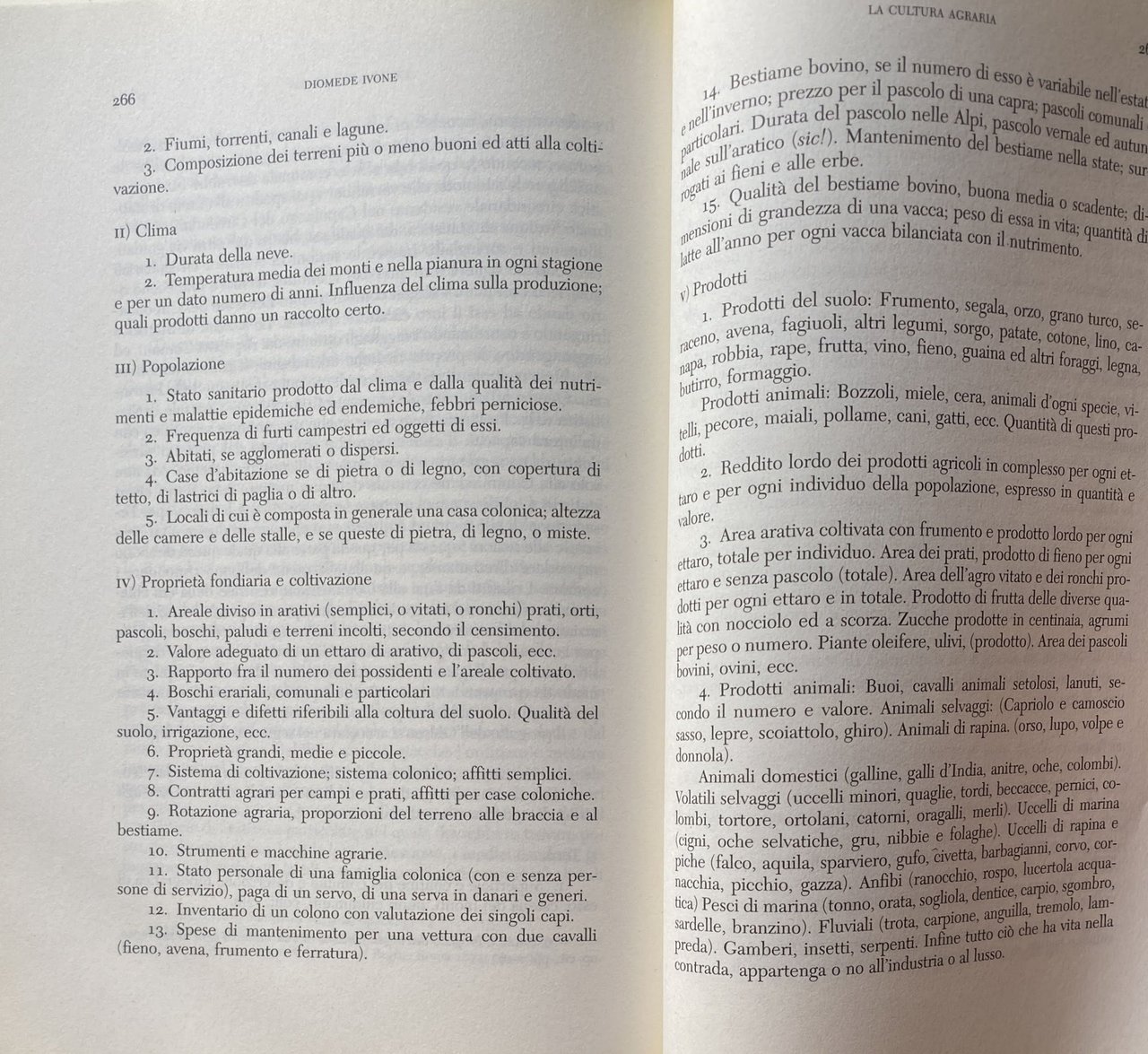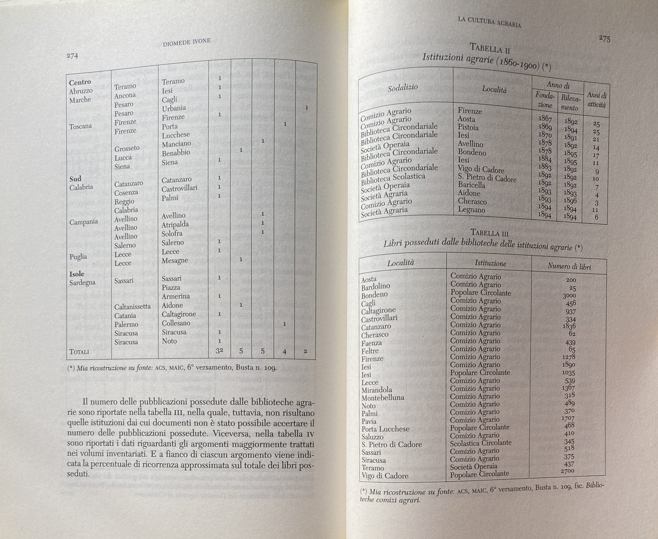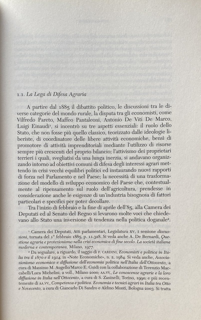 Soggetti: Agricoltura, Storia economica moderna contemporanea, Ottocento, Risorgimento, Novecento, Italia, Progresso, Tecnologia, Industrializzazione, Innovazioni, Produzione agricola, Produttività, Tecniche, Scienze sociali, Società Agricoltori italiani, Politica, Mezzadria, Scuola Corte del Palasio, Competenze, Formazione, Economisti, Tecnici, Legislazione, Mezzogiorno, Comitati locali, Riforme, Lavoro, Contadini, Braccianti, Bibliografia, Propaganda, Informazione, Editoria, Giornali periodici, Opuscoli, Regno di Napoli, Lega, Difesa agraria, Economia rurale, Conferenze enologiche, Ricasoli, Berti, Grimaldi, Depretis, Crispi, Bordiga, Fiorese Miraglia Scienze agrarie Saggi storici Studi Collezionismo Stampa Libri rari fuori catalogo Agriculture Contemporary modern economic history Nineteenth Twentieth century Italy Progress Technology Industrialization Innovations Agricultural production Productivity Techniques Social sciences, Italian farmers' societies Politics Sharecropping School Skills Training Economists Technicians Legislation Local committees Reforms Work Peasants Laborers Bibliography Information Publishing Periodical newspapers Brochures Kingdom of Naples League Agrarian defense Rural economy Oenological conferences Agricultural sciences Historical essays Studies Collecting Press Rare books out of print Jobs Agraria Lombardia agrarie Italia agricola Agricoltori Italiani agronomica Alessandro Rossi Alfonso Litta ambulanti Antonio Manno associazioni Atti Società bestiame Bullettino Camera Deputati campagne chimica CHIZZOLINI coltivazione Comizi Agrari concimi conferenze congresso contadino Corte Palasio costituzione credito agrario crisi dazi compensatori Associazione istruzione Devincenzi Direzione economica esposizione Gaetano Cantoni Giornale Atti Giuseppe Sacchi Governo grande depressione iniziatrici indipendenza interessi istituzioni Italo Giglioli Associazione incremento Lega Difesa locali Luigi Luzzatti meridionale miglioramento Milano Ministero Agricoltura modernizzazione Nicola Miraglia obiettivi organizzate Paese Pavia politica possidenza fondiaria problemi prodotti produzione progresso proposta proprietari agricoltori province pubblicati rappresentanza Relazione ruolo sociale Società sodalizi sperimentazione Stefano Jacini Torino Vilfredo Pareto Luigi Einaudi Maffeo Pantaleoni Antonio De Viti