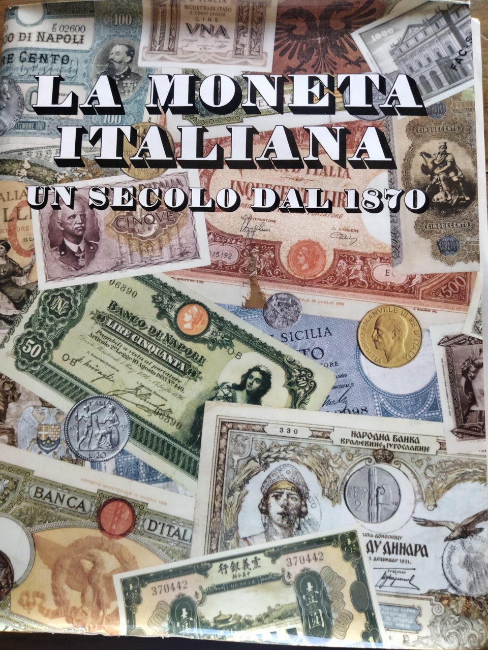 Novara, De Agostini per la Banca Popolare di Novara, 1970. cm.28x36, pp.558. Un volume in-folio più un piccola cartella in aggiunta (aggiunta n. 1). Similpelle editoriale con sovraccoperta. pp. 558, . Molte illustrazioni di banconote e monete, comprese quelle delle colonie e occupazioni italiane e dei miniassegni.