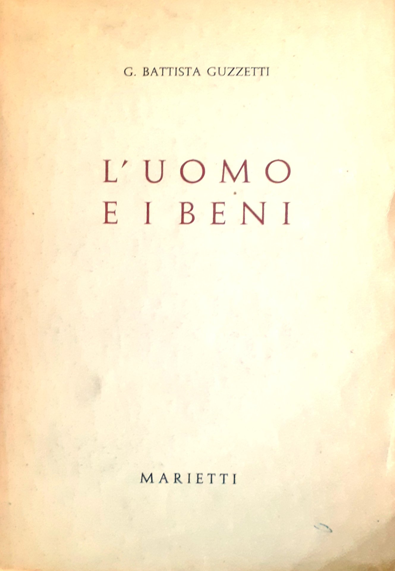 II ed. Del 2^ volume dell'opera in 5 volumi La morale cattolica". G. Battista Guzzetti all'epoca era Professore di Morale nella P. Facoltà Teol. di Milano e di Esposizione della Dottrina e Morale Cattolica nell'Università Cattolica del S. Cuore. In-8, pp. 360, bross. Stato buono (timbri bibliotecari alienati)"