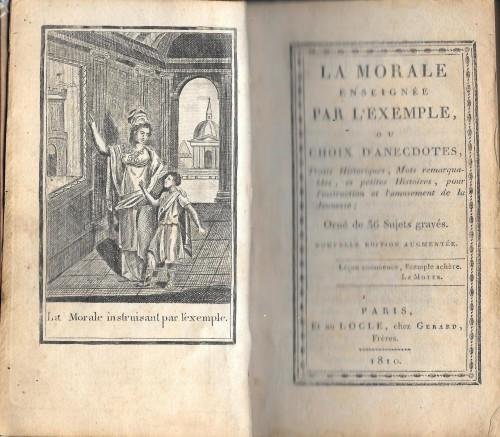 La Morale enseignée par l`exemple, ou choix d`anecdotes, Traits Historiques, Mots remaquables, et petites Histoires, pour l`instruction et l`amusement de la Jeunesse; Orné de 36 Sujets gravés. Nouvelle edition augmentée