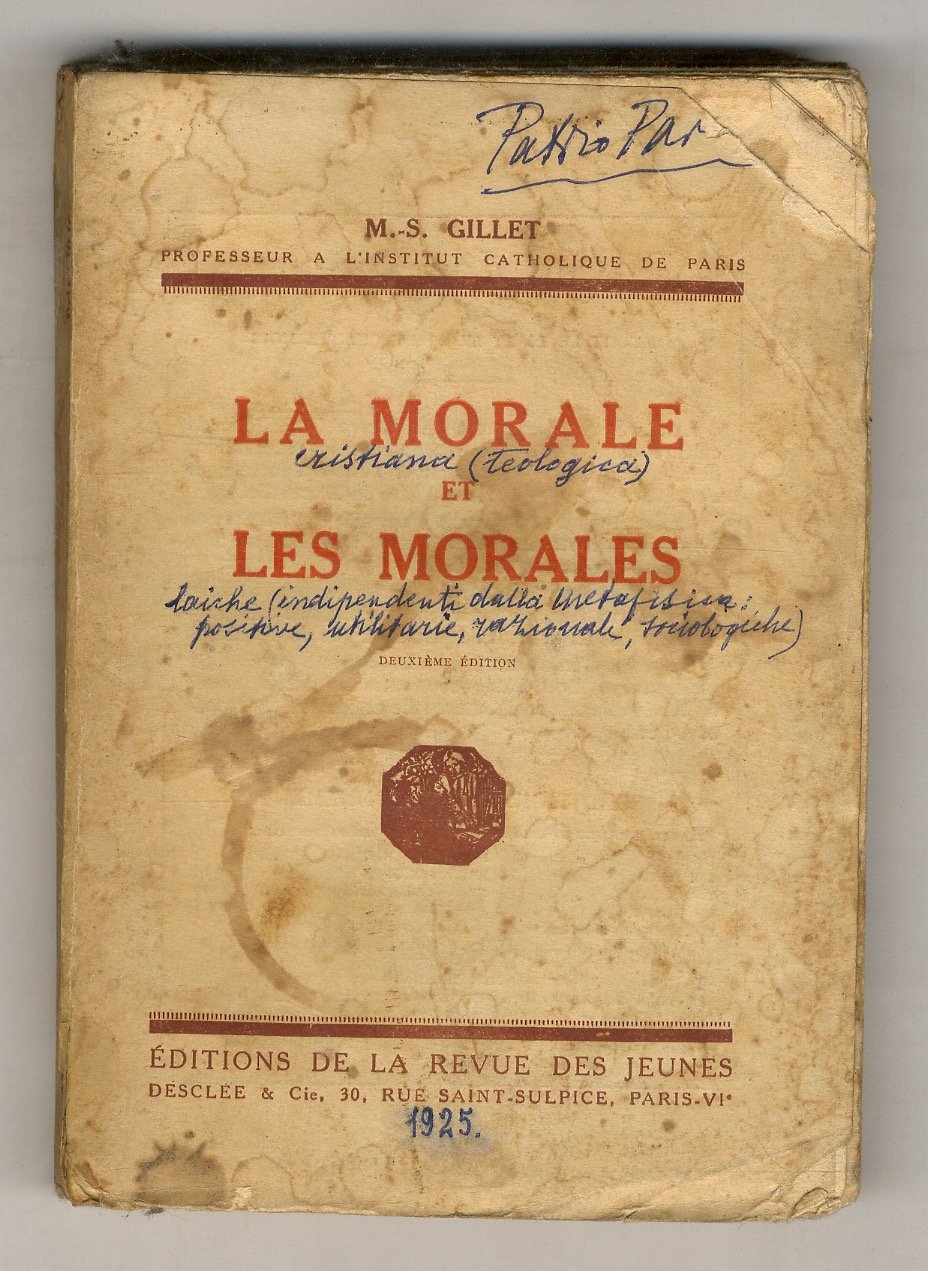 Paris, Editions de la Revue des Jeunes, Desclée et Cie, 1925, in-16, br. editoriale, pp. 302, (2). Tracce d'uso alla coperta, con angolo superiore esterno asportato; note marginali e sottolineature in penna.
