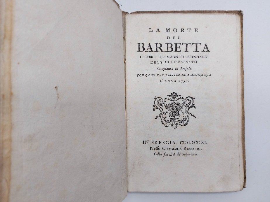 La morte del Barbetta celebre ludimagistro bresciano del secolo passato compianta in Brescia in una privata letteraria adunanza l'anno 1739