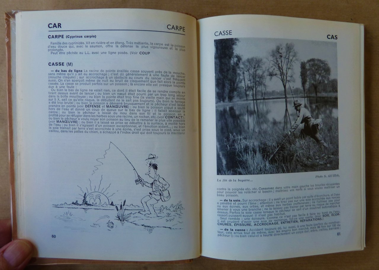 Un volume de format in 8° carré de 368 pp. sur papier glacé; très nombreuses reproductions photographiques, planches en couleurs, dessins humoristiques dans le texte. Reliure de l'éditeur en pleine toile orangée; titres en bleu. Collection "Petite Encyclopédie de La Pêche". Couverture légèrement manié; intérieur bien frais. Voir les photos.
