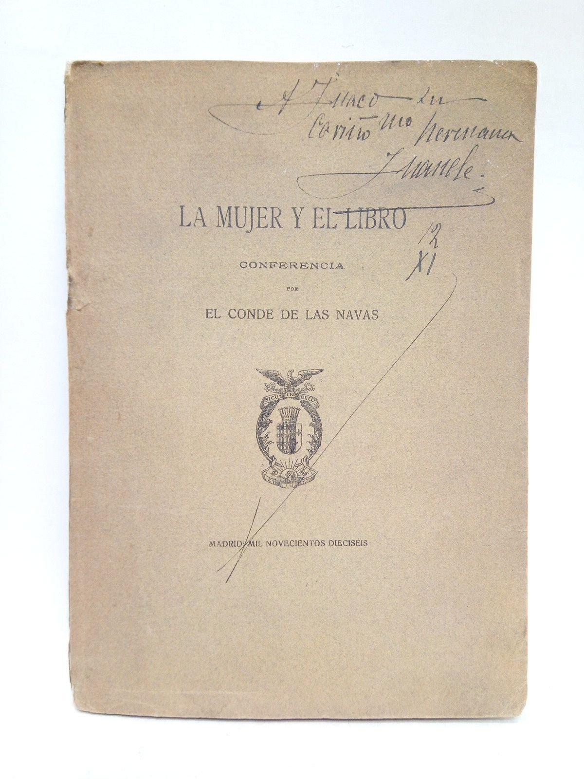 Madrid: Imp. en Talleres de D. Bernardo Rodríguez, 1916.- 44 p., [1 h.]; 4º menor (22 x 15,6 cm); Texto recuadrado con filetes en color rojo; Rústica Ed.* Con dedicatoria autógrafa del Conde a su hermana en la cubierta anterior. Lomo con mínimas faltas. FEMINISMO, CREACIÓN FEMENINA, HISTORIA DE LA MUJER Y MUNDO FEMENINO