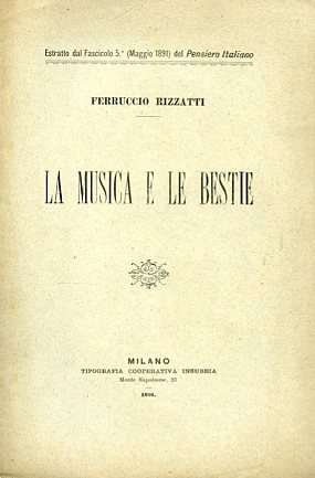 La musica e le bestie. Estratto dal Fascicolo 5° (Maggio 1891) del Pensiero Italiano