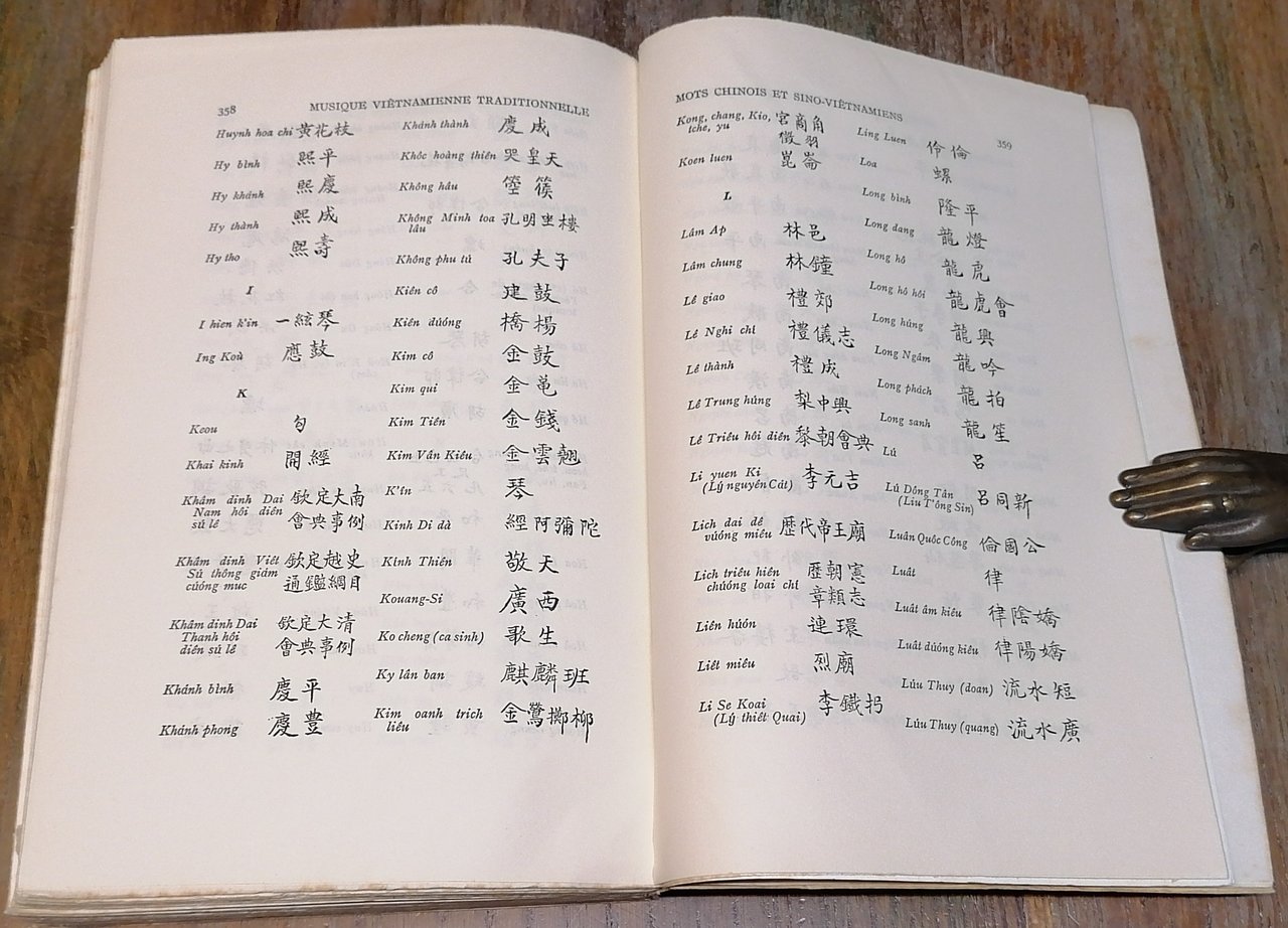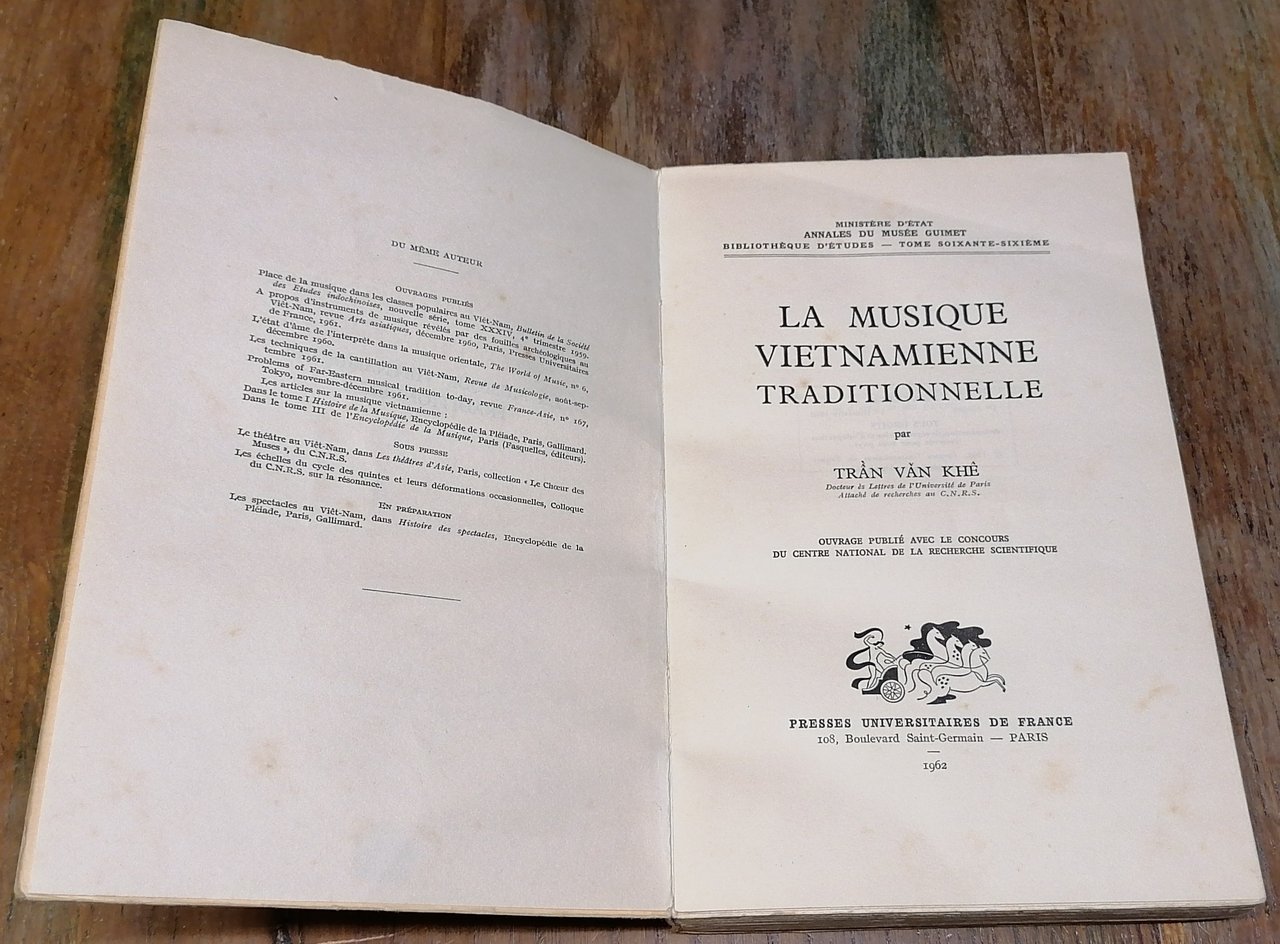 (Sud-Est asiatico; Vietnam; Indocina; Musica tradizionale) In 8°, brossura editoriale con titoli ed illustrazione a colori, pp. (8),384, con numerosi disegni nel testo (strumenti tradizionali ed esempi musicali, caratteri della scrittura vietnamita) e VIII tavole fuori testo su carta patinata con immagini fotografiche in bianco e nero. "Annales du Musée Guimet - Bibliothèque d'études", tome 66. Volume ben conservato.