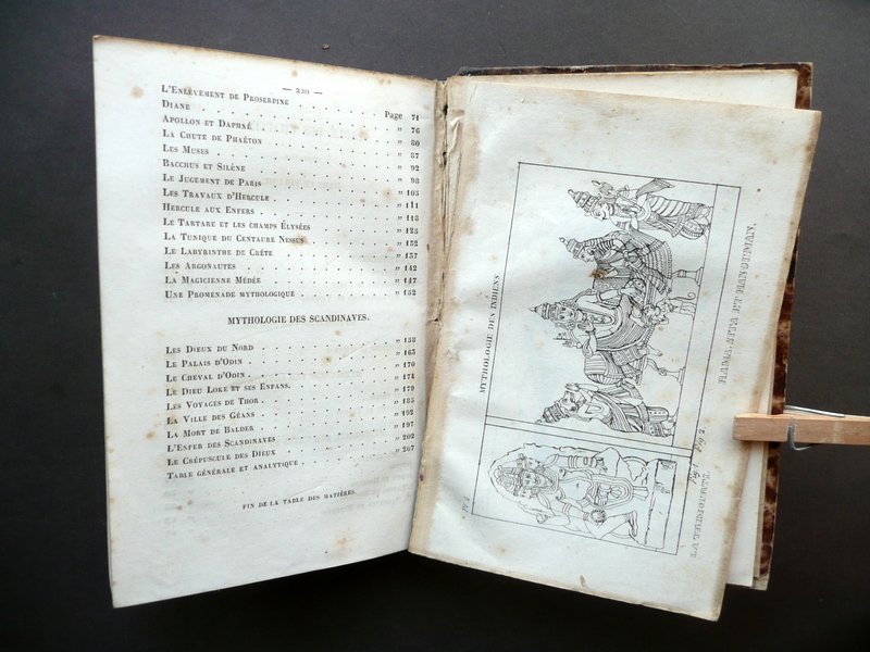M. Lamé Fleury, La Mythologie Racontée aux enfants par M. Lamé Fleury Auteur de pluisieurs ouvrages d'education Librairie d'educatione et d'istruction d'André Ubicini, Milan, s. d. (metà '800 circa); cm 15x10, pp. 220, con XIV (14) belle tavole incise in b/n al termine del testo (vedi foto); legatura d'epoca in mezza pelle con titolo annotato a mano entro etichetta applicata al dorso; piatti in carta marmorizzata. Testo in francese. Condizioni di conservazione Esemplare ben conservato con tracce d'uso; coperta con alcune piccole leggere abrasioni e strappetti, margini e angoli dei piatti con qualche circoscritta mancanza. Interni buoni con alcune piccole leggere bruniture; tavole I-VII con allentamento delle cuciture e conseguente parziale distacco dal corpo del testo (vedi foto). Prima edizione milanese (Ubicini), senza data ma di metà Ottocento circa, contenente 14 belle tavole incise in bianco e nero al termine del testo. SETT124.L12047 N P