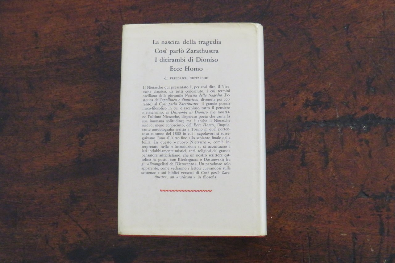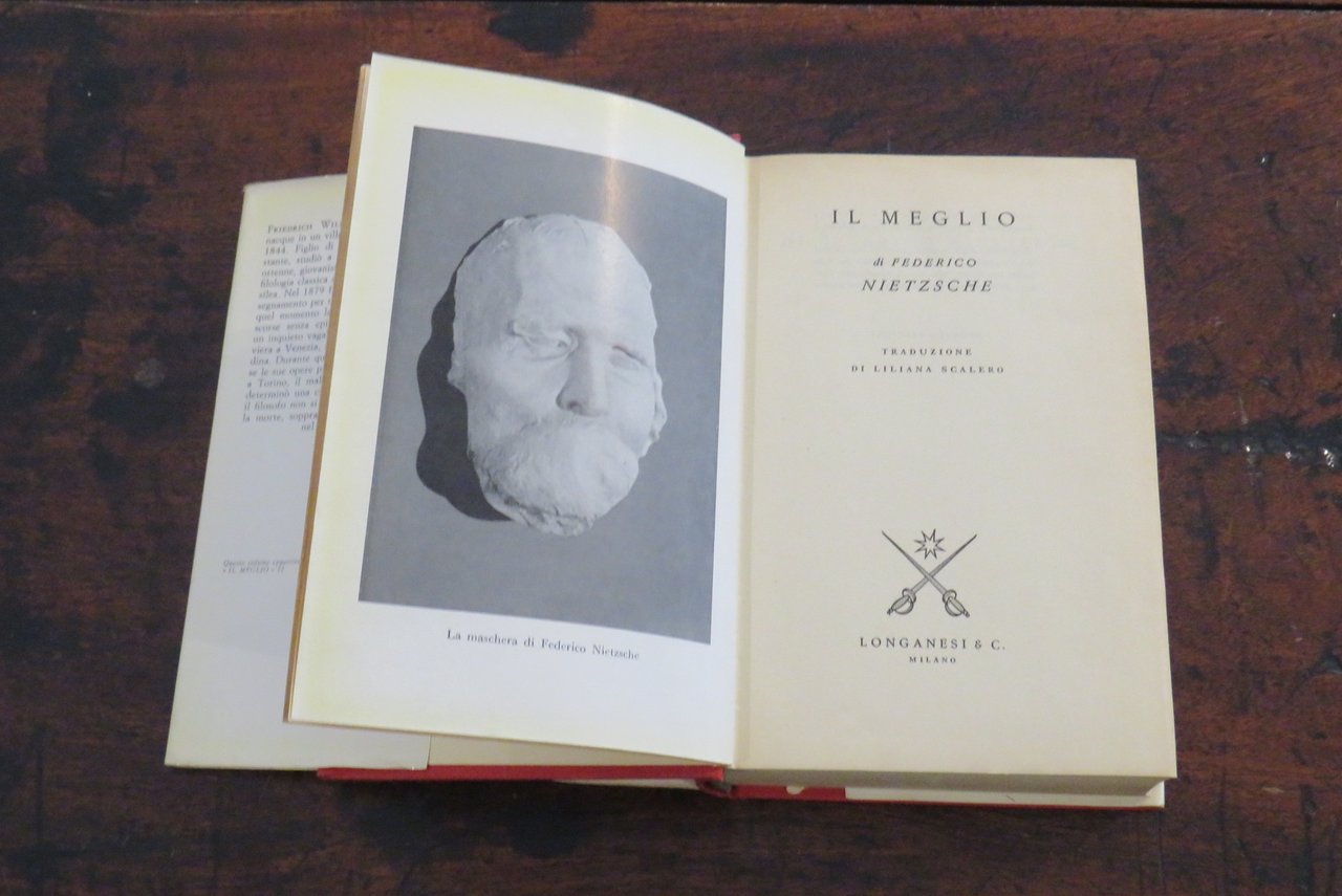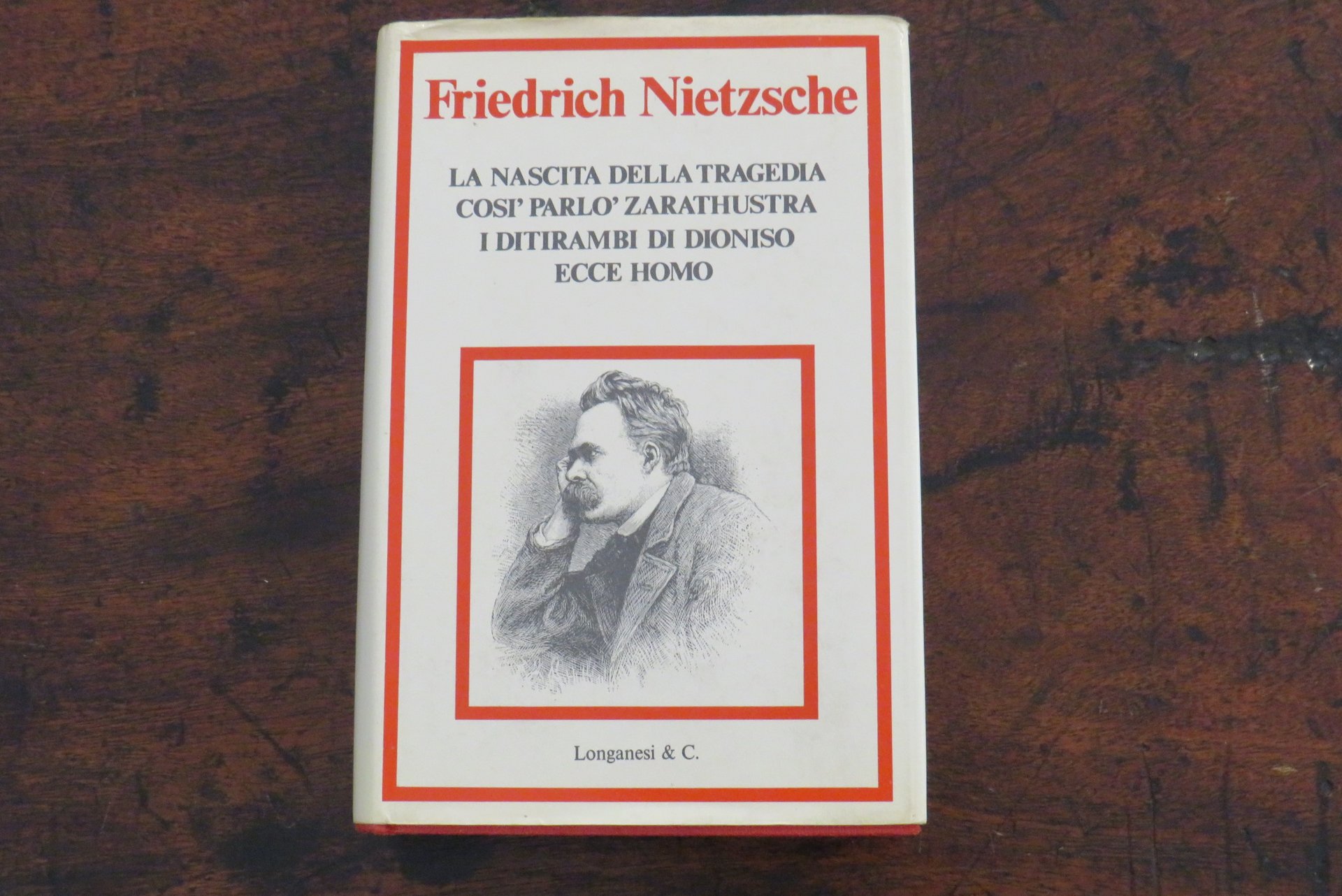 Milano, Longanesi & C., 1956. In -8 (mm. 130,5x190), pp. 768, con una tavola in nero, fuori testo, all’antiporta ("La maschera di Federico Nietzsche"). Legatura editoriale muta tutta tela, con titoli in oro su tassello al dorso. Sovraccoperta illustrata a colori al piatto anteriore, con titoli al dorso. Traduzione di Liliana Scalero (saggio introduttivo). Questo volume appartiene alla collezione "IL MEGLIO" n. 12. Breve profilo biografico dell’autore all’aletta anteriore della sovraccoperta. All’aletta posteriore della sovraccoperta: "I grandi filosofi di Karl Jaspers". Breve descrizione alla quarta di copertina. Seconda edizione. Ottimo.