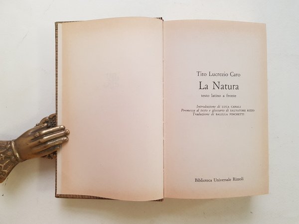 Testo latino a fronte.<BR>Introduzione di Luca Canali. Premessa al testo e glossario di Salvatore Rizzo. Traduzione di Balilla Pinchetti.<BR>In 16°; pp. 515; cartonato editoriale con titoli oro al dorso e taglio dorato; cucito.<BR>CONDIZIONI OTTIME (consueta ingiallitura delle pagine dovuta alla qualità della carta).