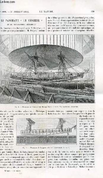 La nature n° 1000 - Le panorama "Le vengeur" et ses installations mécaniques par Richou. Les vibrations des coques de navires et le nouveau système Yarrow avec gravures dans le texte du navire. L'institut Pasteur en Australie, suite avec gravures