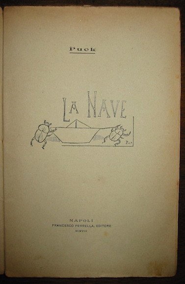 16mo (cm. 19,5), 58 pp., 3 cc.nn. Brossura editoriale fig. (ispirata a quella del Cambellotti per ‘La Nave’). Ds. parzialmente staccato. Raccolta di sonetti parte in italiano, parte in napoletano.