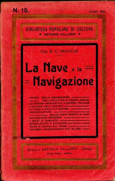 La nave e la navigazione. Storia della navigazione (…) con molte incisioni e una tavola a colori.