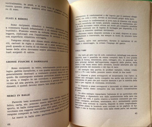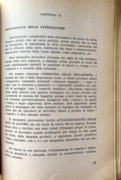 Soggetti: Manuali, Corsi di formazione professionale, Navi, Portuali, Addestramento professionale dei lavoratori portuali, Istruzione Professionale, Lavoro, Manovratori, Libri Vintage Fuori catalogo, Libri rari, Collezionismo, Chicche librarie, Rarità, Anni Sessanta, Anni Settanta, Porti, Marittimi, Prevenzione degli Infortuni, Pedagogia, Comandi, Mestieri, Operai, Libri tecnici, Manovrare, Manovre, Marina mercantile, Operai, Addetti, Nave, Struttura, Prora, Poppa, Nozioni, Istruzione, Navigazione, Accademia navale, Riferimento, Consultazione, Bibliografia, Apertura delle boccaporte, Illuminazione, Cavi metallici, Resistenza, Commando, Morsello, Roll-on, Roll-off, Traghetti, Autosbarcante, Torre, Tenuta stagna, Containers, Cassero, Scafo, Stiva, Carichi, Coperta, Zucchero, Riso, Fusti, Bidoni, Fiaschi, Damigiane, Trasporti, Trasporto, Merci, Balle, Rizzatura, Fardaggio, Separazione, Galleggiabilità, Lezioni, Dispense, Incendio, Scuole professionali, Attrezzatura, Stivaggio, Merci, Ormeggio, Manutenzione, Meccanismi, Cambusa, Bordo, Stivaggio, Stiva, Manuals, Vocational Training Courses, Ships, Dockers, Professional Training of Port Workers, Professional Education, Jobs, Maneuvers, Out of Print Books, Rare Books, Collecting, Book Goodies, Rarities, Sixties, Seventies, Ports, Maritime, Prevention of Injuries, Pedagogy, Commands, Professions, Workers, Technical books, Maneuvering, Maneuvers, Merchant marine, Workers, Workers, Ship, Structure, Bow, Stern, Notions, Instruction, Navigation, Naval Accademy, Reference, Consultation, Bibliography, Opening the hatches, Lighting, Metal cables, Resistance, Commando, Ferries, Motorboat, Tower, Watertight, Formwork, Hull, Hold, Loads, Deck, Sugar, Rice, Drums, Bins, Flasks, Carriages, Transport, Transport, Goods, Bales, Lashing, Blushing, Separation, Buoyancy, Lessons, Handouts, Fire, Vocational schools, Equipment, Stowage, Goods, Mooring, Maintenance, Mechanisms, Galley, Board, Hold
