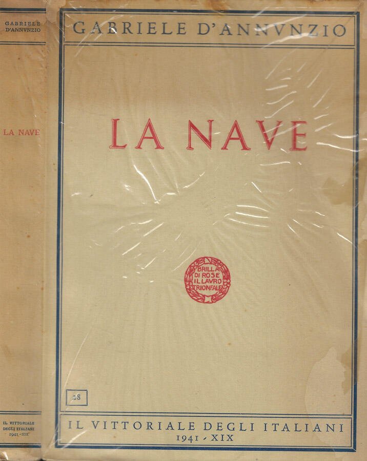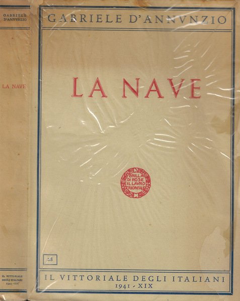 Volume della serie Opere di Gabriele d'Annunzio. Coperta in cartoncino muta, con sovraccoperta a tre risvolti, in cartoncino, scurita dal tempo, con lievi segni d'uso e leggera fioritura sparsa, con fodera trasparente plastificata con strappetti e piccole mancanze. Pagine ingiallite, con tagli irregolari, salde, con ampio margine e qualche rara gora. Firma di appartenenza, ad inchiostro nero, alla pagina d'occhietto. Numero pagine 261.